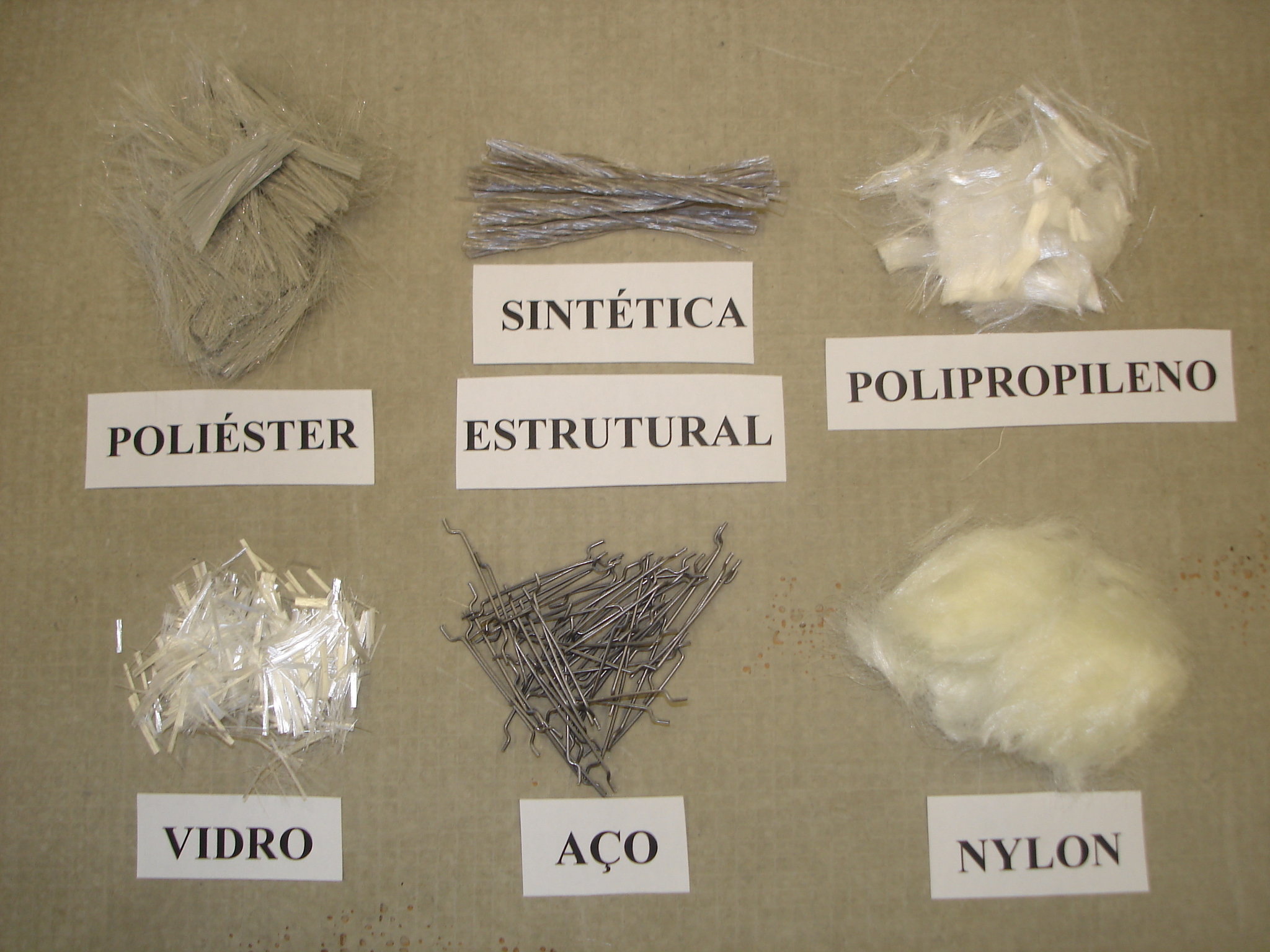 As fibras mais usadas são as fibras de aço e as fibras de polipropileno.